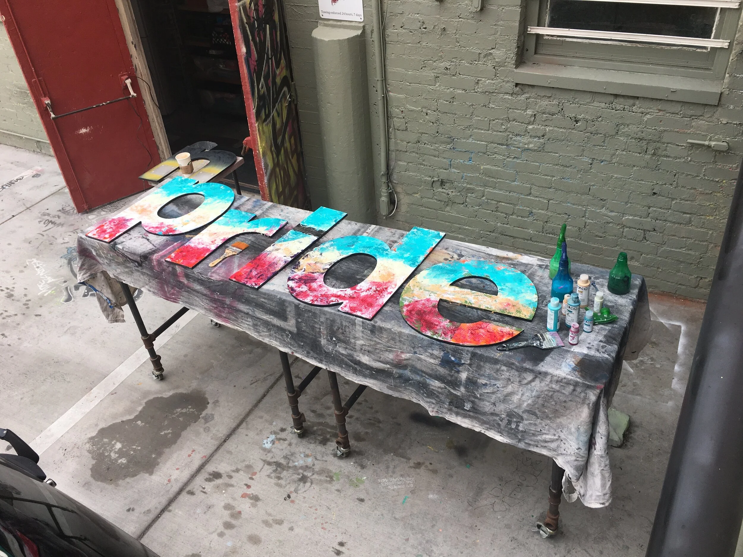 The letters for this project came from the former American Apparel signage that was taken down when The Studio Door art gallery and artists studios occupied the building.